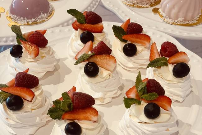 Our Mini Pavlovas are the perfect balance of light, airy meringue and rich, creamy filling. Topped with fresh fruits like berries and a dollop of mascarpone cream, these bite-sized desserts are a delightful addition to any celebration. Whether it’s a wedding, birthday, or special event, Mini Pavlovas offer a refreshing and elegant touch that will impress your guests with every bite. Perfectly sized for individual servings, they’re as beautiful as they are delicious!
